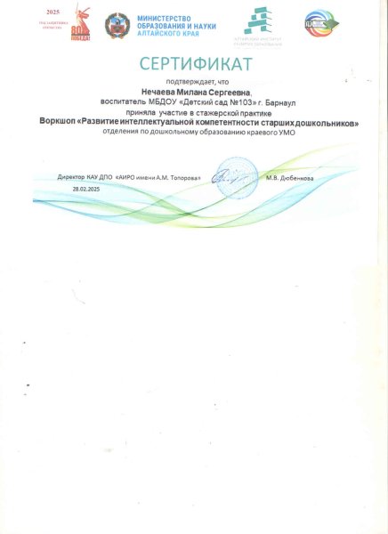 Участие в стажерской практике (Нечаева М.С.)